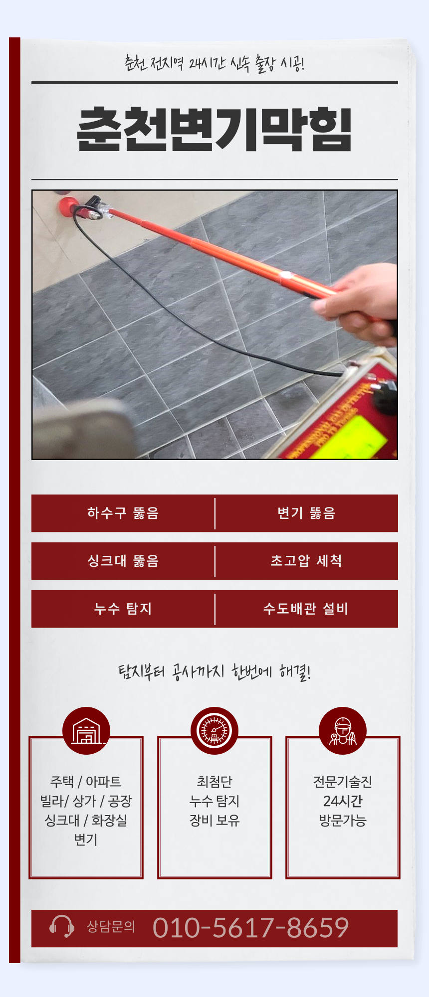 ![]() 안녕하세요. 저는 춘천 소양로동에서 오랜 시간 동안 주택 관리와 설비 관련 업무를 해 온 사람입니다. 며칠 전, 이웃집에서 갑자기 "변기가 물이 잘 안 내려가요!"라는 다급한 연락을 받고 출동했습니다. 춘천의 오래된 주택들이 많은 소양로동에서는 변기 막힘 문제가 생각보다 자주 발생합니다. 특히 갑작스러운 변기 물내림 불량은 당황스럽기 그지없죠. 물이 역류하거나 넘치기 직전의 그 아찔한 순간, 어떻게 대처해야 할지 막막해하는 분들이 많습니다. 이럴 때 섣불리 전문 업체를 부르기 전에, 간단하게 원인을 파악하고 자가 점검을 통해 해결할 수 있는 방법들이 있습니다. 오늘은 춘천변기막힘의 주된 원인부터 시작해서, 소양로동 주민들이 현장에서 겪을 수 있는 변기 물내림 불량의 해결책까지 상세히 안내해 드리겠습니다. 이 글을 통해 여러분의 소중한 시간을 아끼고, 불필요한 비용 지출을 줄이는 데 도움이 되기를 바랍니다. 춘천변기막힘 문제, 이제는 혼자서도 어느 정도 대응할 수 있도록 핵심 정보들을 정리해 보았습니다.
